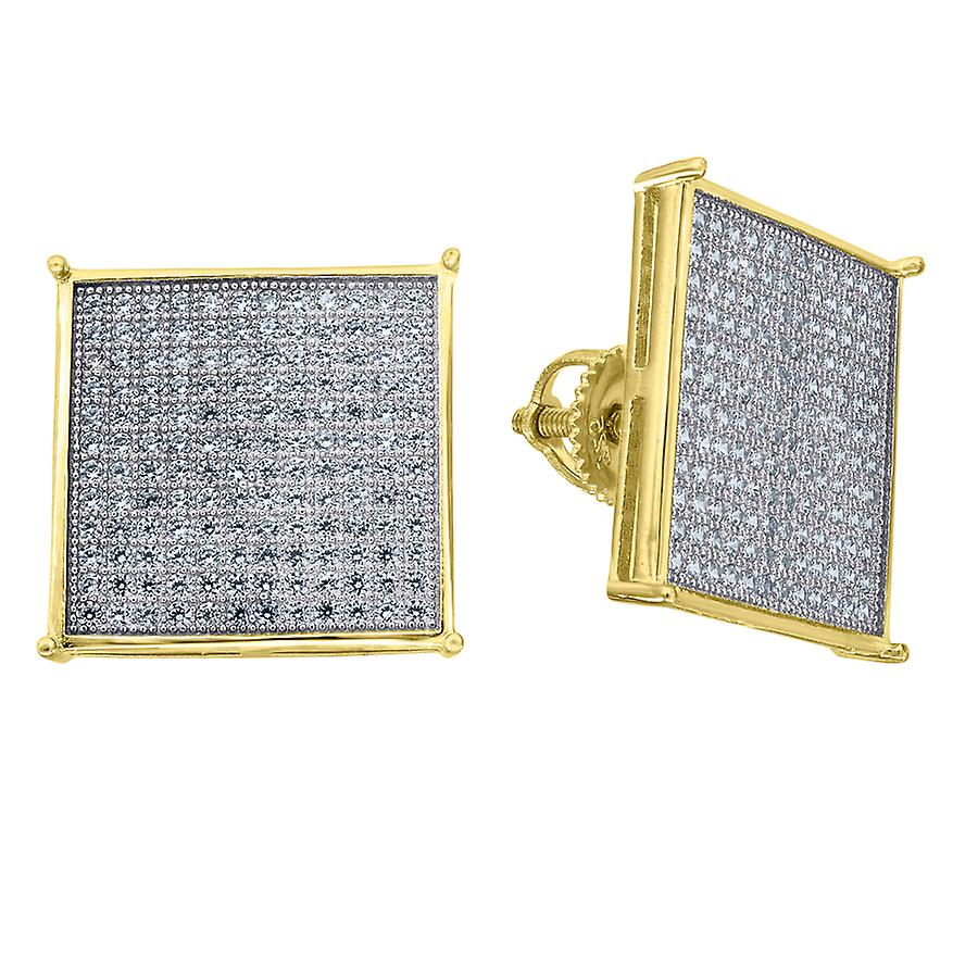 925 Sterling Silver Yellow tone Mens Cubic Zirconia Square Stud Earrings Earring for Men - 4.6 Grams