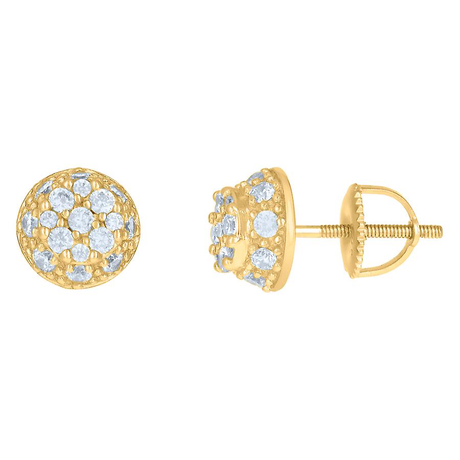 925 Sterling Silver Yellow tone Mens Cubic Zirconia Fashion Stud Earrings 7.9x7.9mm Wide Earring for Men