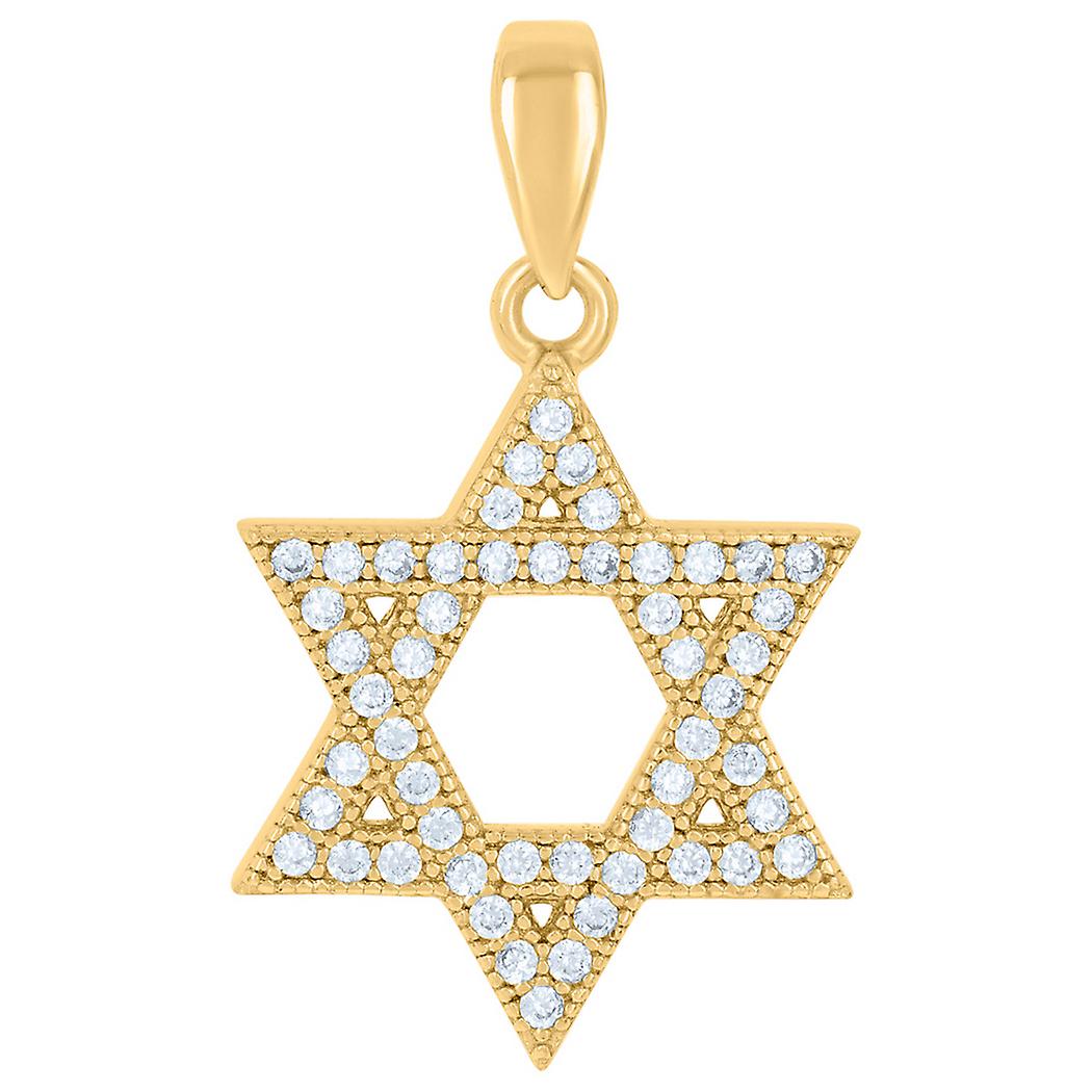 925 Sterling Silver Yellow tone Unisex Cubic Zirconia Religious Judaica Star of David-Religious Symbol Charm Pendant Nec