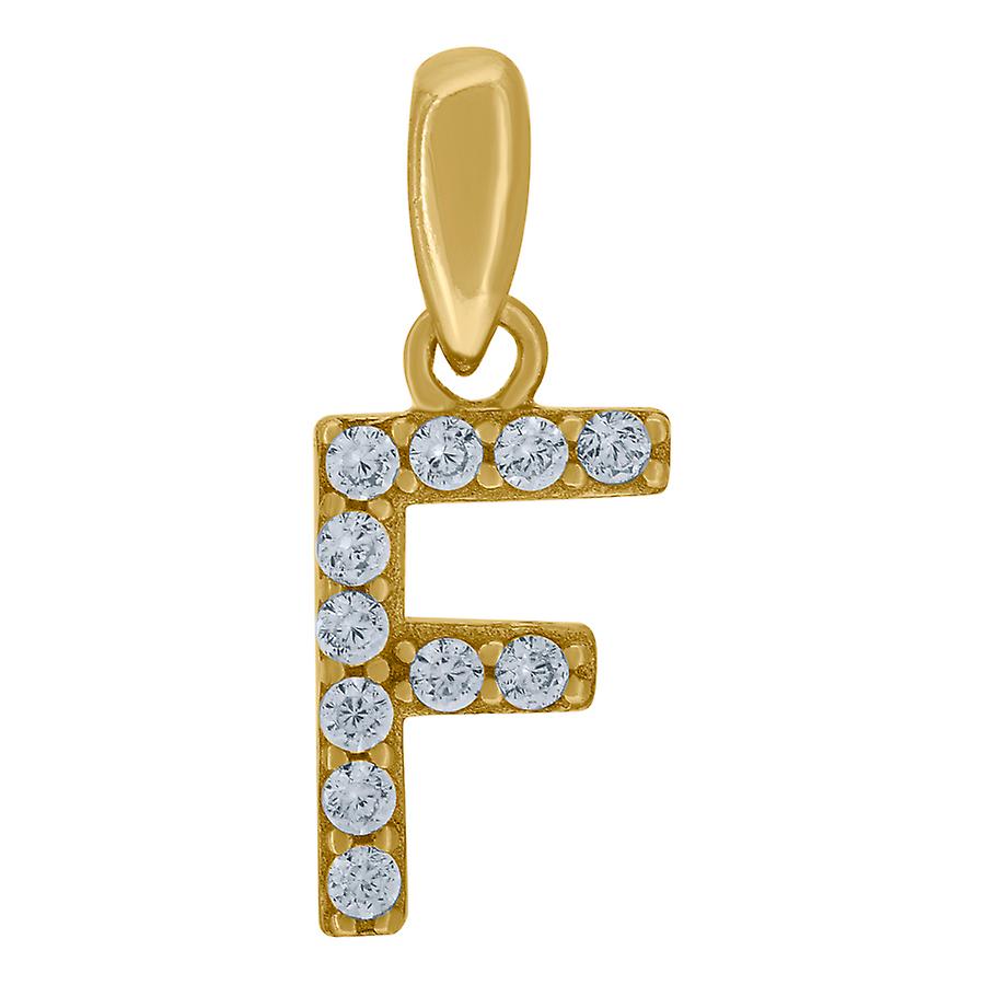 925 Sterling Silver Yellow tone Unisex Cubic Zirconia Letter Name Personalized Monogram Initial Alphabet F Charm Pendant