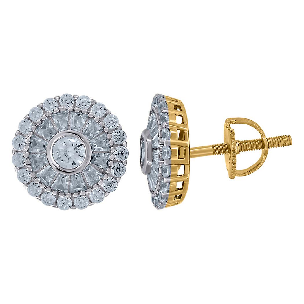 925 Sterling Silver Yellow tone Unisex Baguette Cubic Zirconia Fashion Stud Earrings 11.5mm Wide-Stud Earring for Women