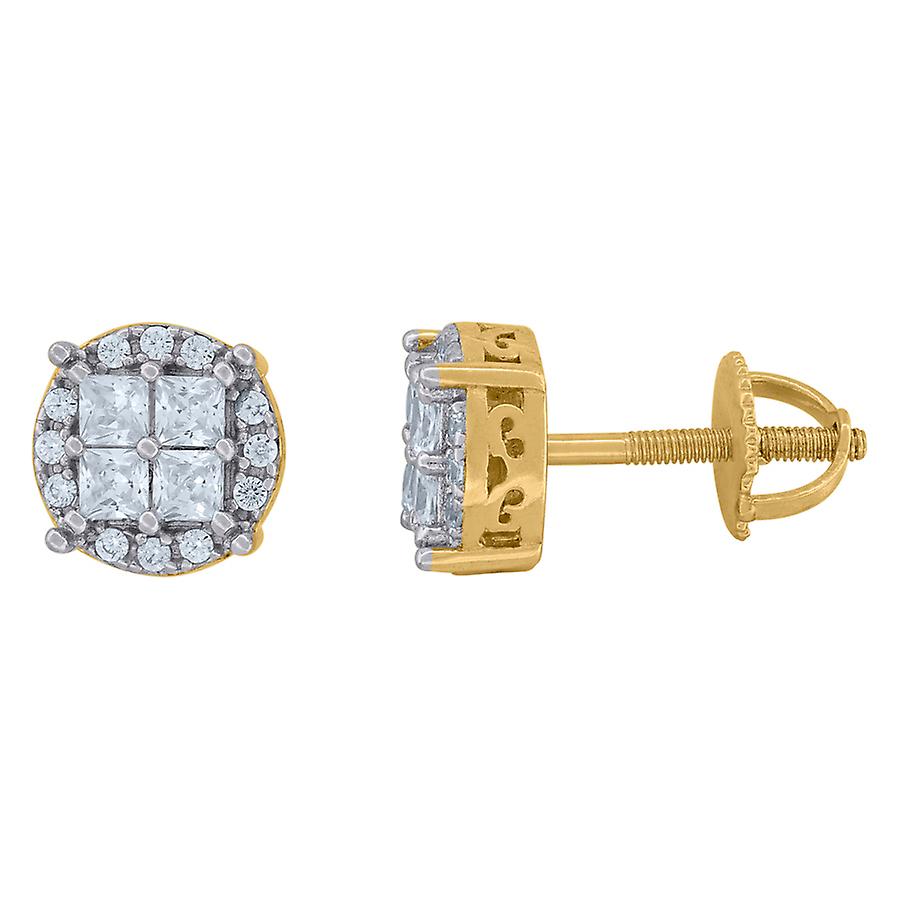 925 Sterling Silver Yellow tone Unisex Princess cut Cubic Zirconia Fashion Stud Earrings 9.3x9.3mm Wide-Stud Earring for