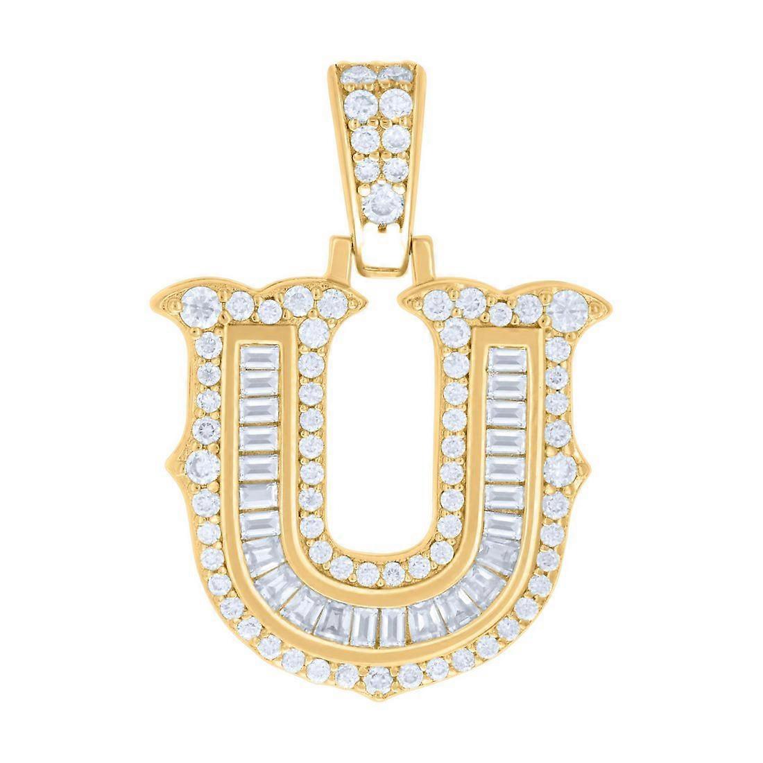 925 Sterling Silver Yellow tone Unisex 0.61ct, 0.26ct Baguette Round Moissanite Letter Name Personalized Monogram Initia