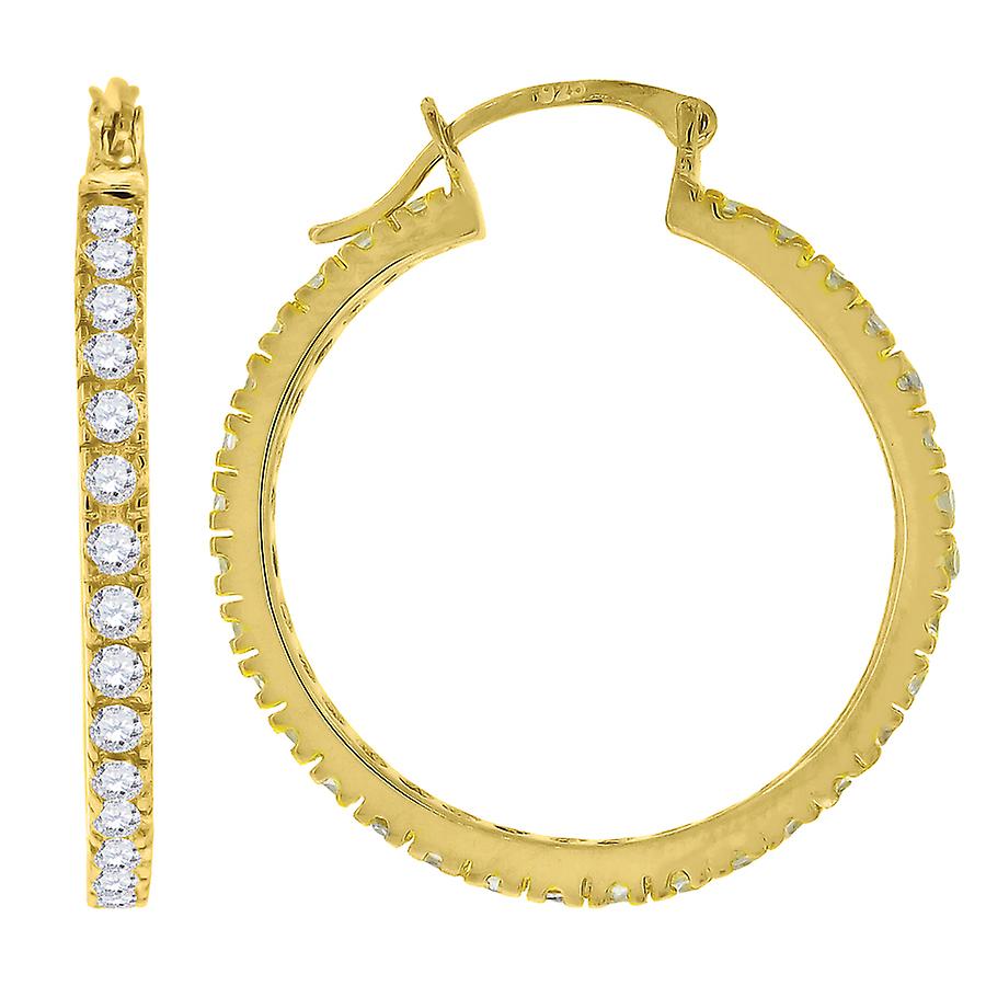 925 Sterling Silver Yellow tone Womens Cubic Zirconia Single Row Migraine Huggie Hoop Earrings Mea-Hoop Earring for Wome