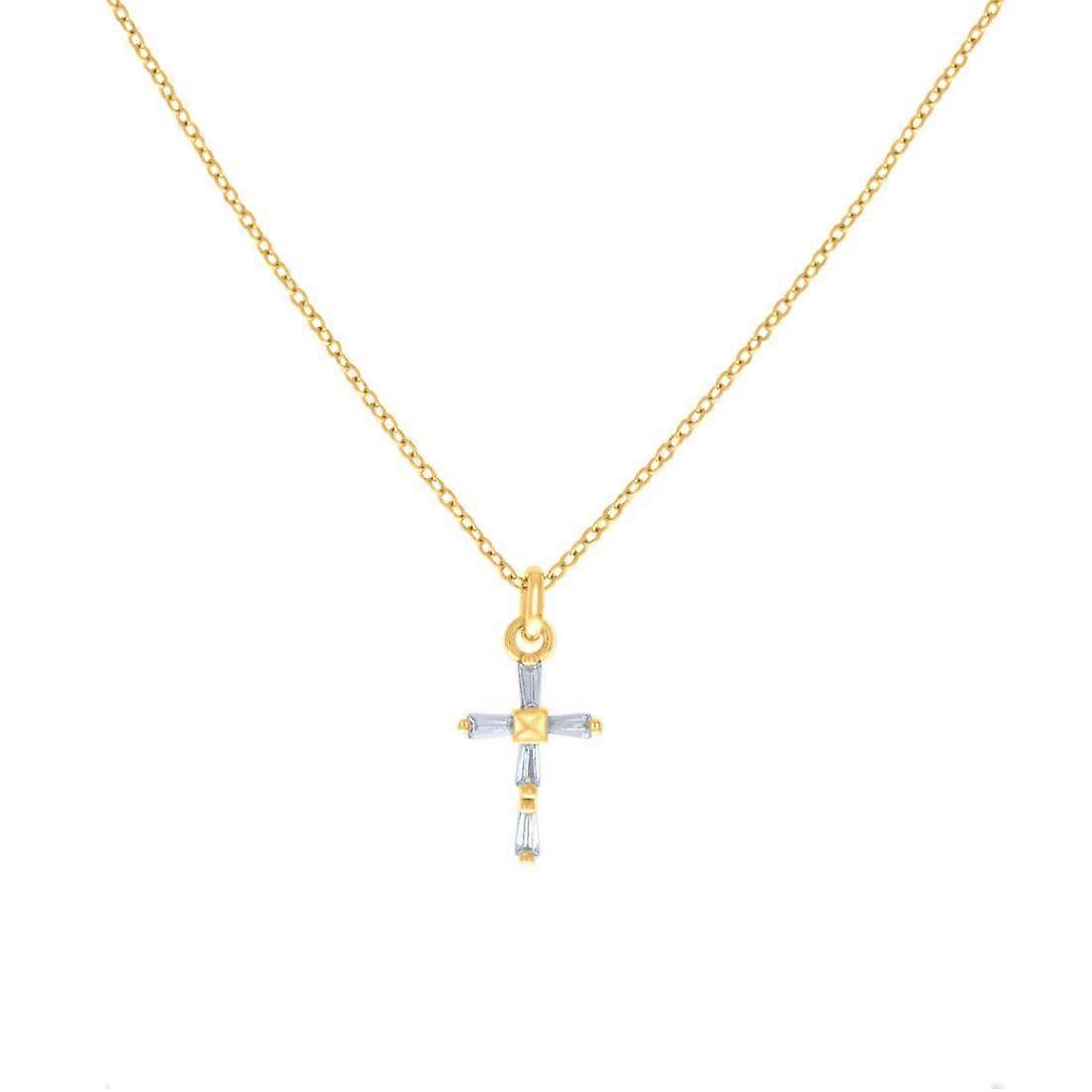925 Sterling Silver Yellow tone Womens Baguette Cubic Zirconia Religious Faith Cross Charm Necklace 15.2x8.9mm Wide Pend