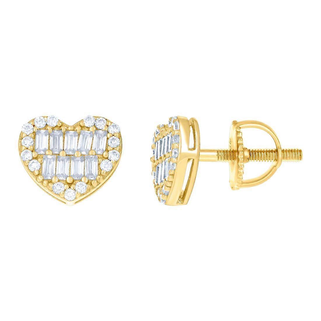 925 Sterling Silver Yellow tone Womens 0.16ct Round 0.51ct Baguette Moissanite Love Heart Stud Earrings 7.5x8.5mm Wide-S