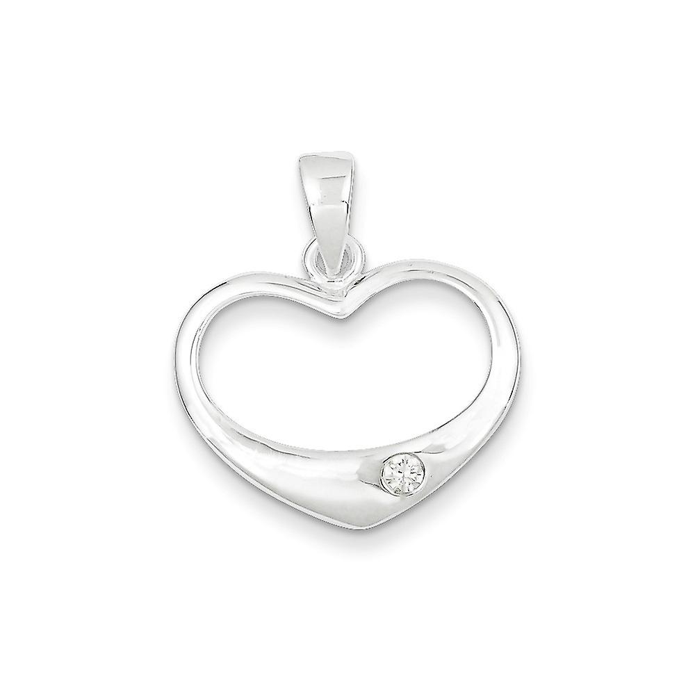925 Sterling Silver Open Solid White Cubic Zirconia Polished Love Heart Pendant Necklace 24.6x21.65mm Wide-Pendant for W