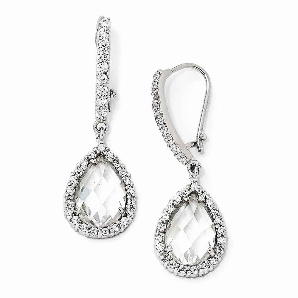 925 Sterling Silver Kidney wire Checker cut Cubic Zirconia French-Wire Earrings 34x12mm Wide Dangle Earring for Women