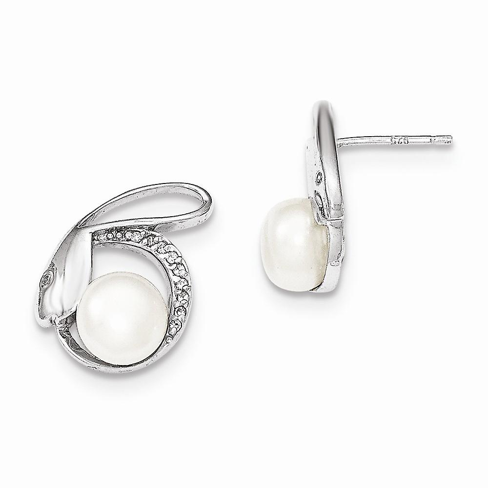 925 Sterling Silver Polished With Cubic Zirconia 8 9mm Freshwater Cultured Button Pearl Post Earrings Stud Earring for