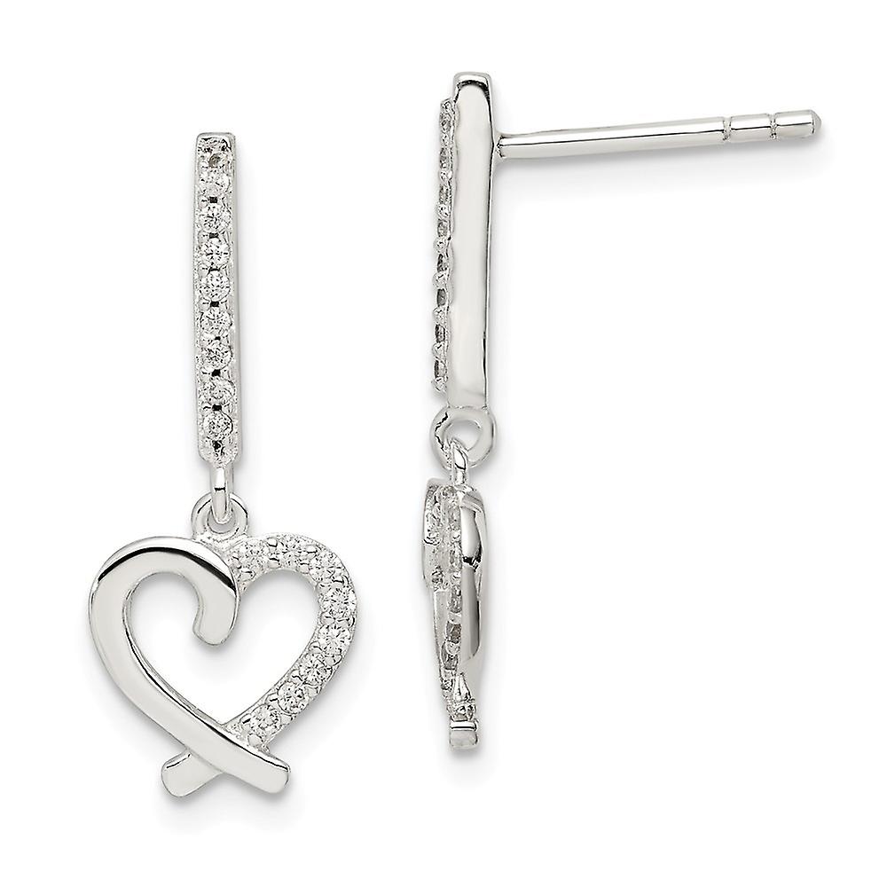 925 Sterling Silver Cubic Zirconia Dangle Love Heart Post Earrings 22.2x9mm Wide-Dangle Earring for Women
