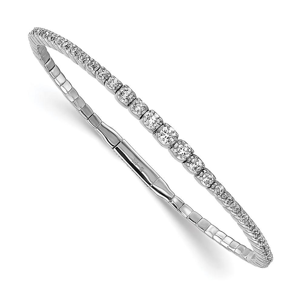 925 Sterling Silver Cubic Zirconia Flexible Bangle Bracelet 3.7mm Wide Cuff-Bracelet for Women