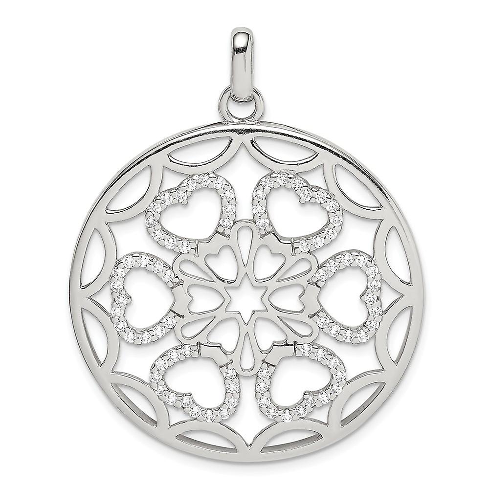 925 Sterling Silver Cubic Zirconia Love Hearts Circle Pendant Necklace-Pendant for Women