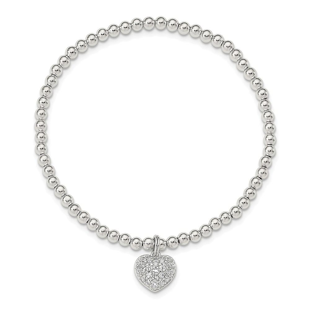925 Sterling Silver Cubic Zirconia Love Heart Stretch Bracelet 3mm Wide-Stretch-Bracelet for Women