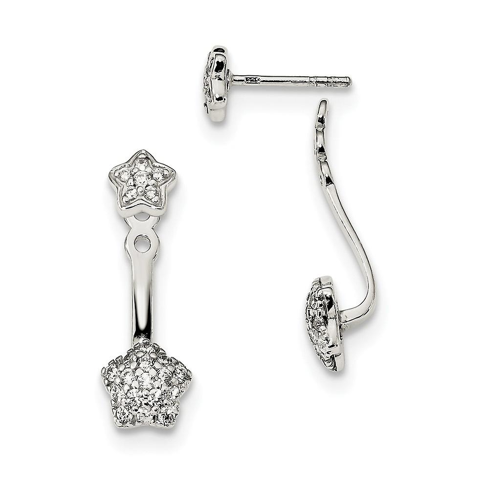 925 Sterling Silver Cubic Zirconia Removeable Front Back Star Earrings 25.2x7.6mm Wide Stud Earring for Women