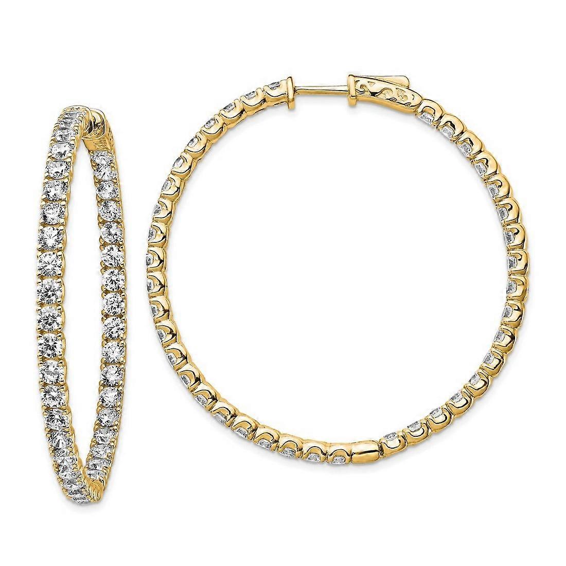 925 Sterling Silver Gold tone Cubic Zirconia In and Out Hinged Hoop Earrings 48.8x50.2mm Wide 2.9mm Thick-Hoop Earring f