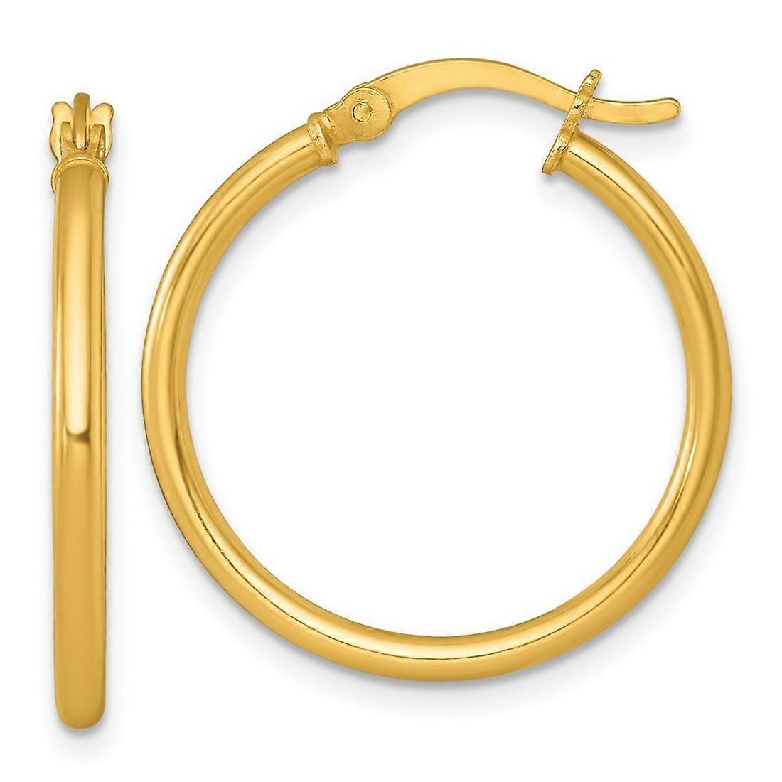 Sterling Silver Gold-tone Polished 2.0mm Round Hoop Earrings - Measures 26.3x24.8mm Wide 2mm Thick - 2.3 Grams In Sterling Silver in Plated Metal - - Thickness: 2 mm - Width of Item: 24.8 mm - Length of Item: 26.3 mm - Earring Closure: Wire & Clutch - Earring Type: Hoop - Finish: Polished -