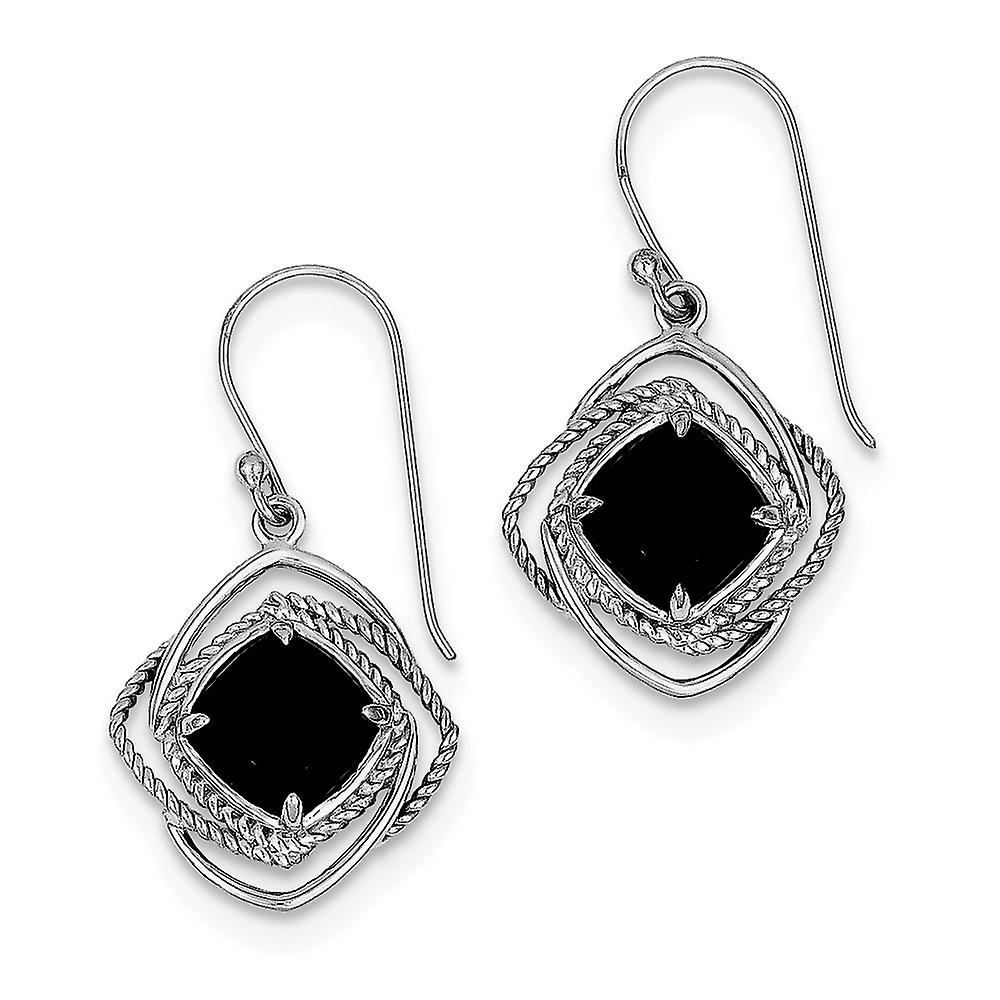 925 Sterling Silver Shepherd hook Simulated Onyx Long Drop Dangle Earrings 32x17mm Wide-Dangle Earring for Women