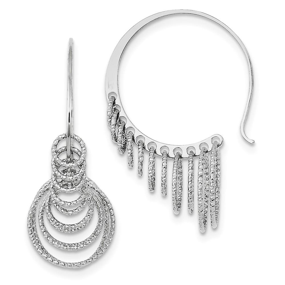 925 Sterling Silver Shepherd hook Rhodium Plated Sparkle Cut Circles Dangle Hoop Earrings 47x18mm Wide-Hoop Earring for