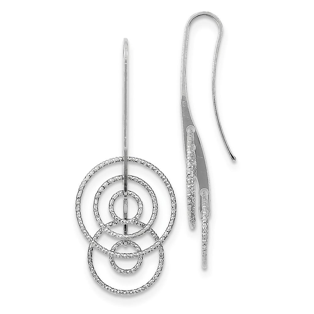 925 Sterling Silver Shepherd hook Rhodium Plated Sparkle Cut Circles Long Drop Dangle Earrings 50x20mm Wide-Dangle Earri