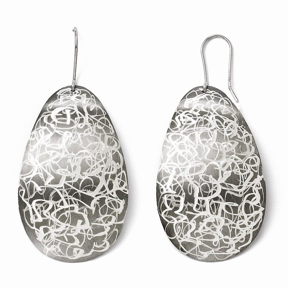 925 Sterling Silver Scratch finish and Ruthenium Shepherd Hook Earrings 52x25mm Wide Dangle Earring for Women