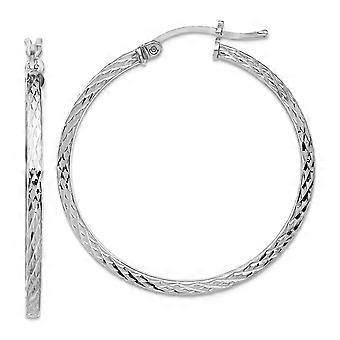 925スターリングシルバースパークルカットスクエアチューブフープイヤリング-女性のためのフープイヤリング