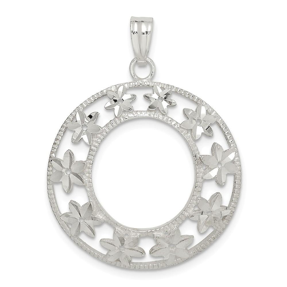 925 Sterling Silver Sparkle Cut Flower Pendant Necklace 25.96x25.99mm Wide-Pendant for Women