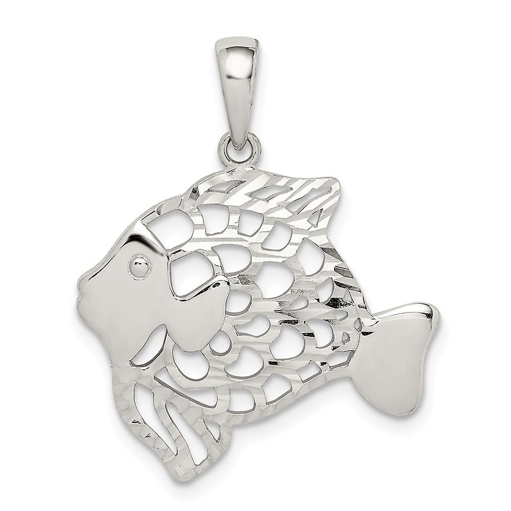 925 Sterling Silver Sparkle Cut Animal Sealife Fish Pendant Necklace 22x23.16mm Wide-Pendant for Women