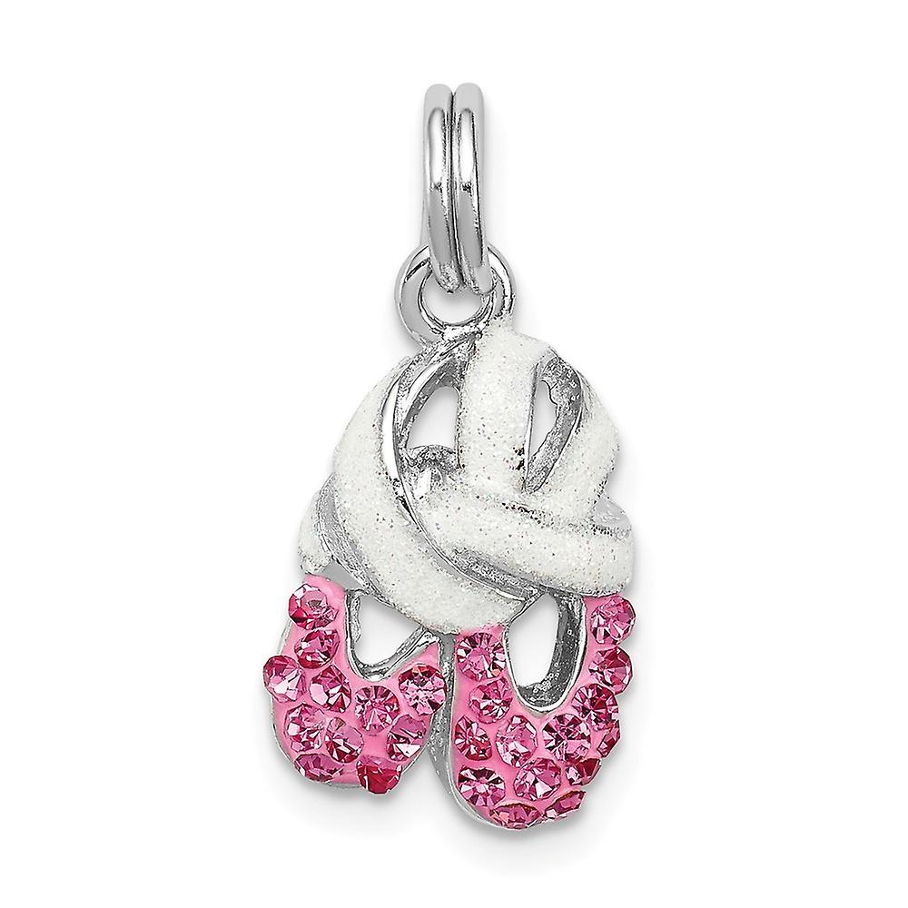 925 Sterling Silver Split Ring Pink Cubic Zirconia Enamel Ballet Slipper Charm 17x11mm Wide Pendant Necklace for Women