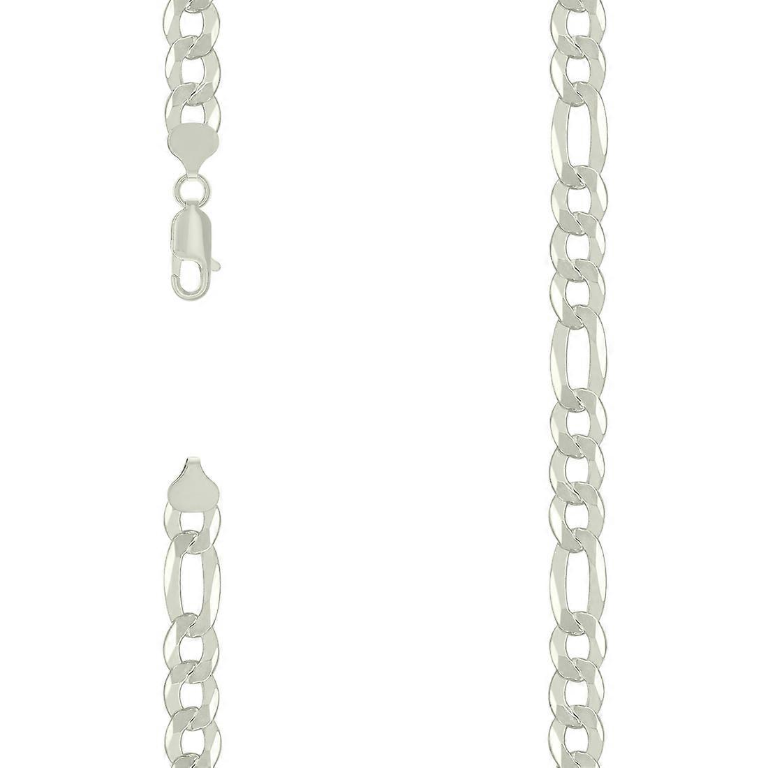 925 Sterling Silver Super Flat Figaro Chain-Silver Plated 8.9mm Bracelet Link-Bracelet for Women and Men - Length: 7 to