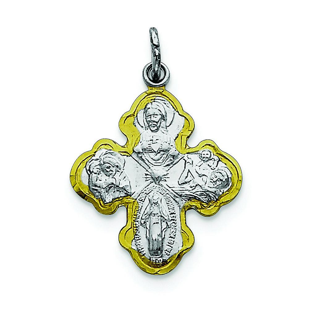 925 Sterling Silver Solid Satin Reversible Not engraveable Four Way Medal Charm 25x18mm Wide Pendant Necklace for Women