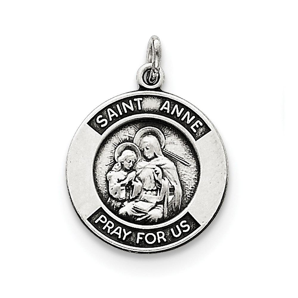 925 Sterling Silver Solid Satin Oxidized Saint Anne Medal Pendant Necklace 26x21mm Wide-Pendant for Women