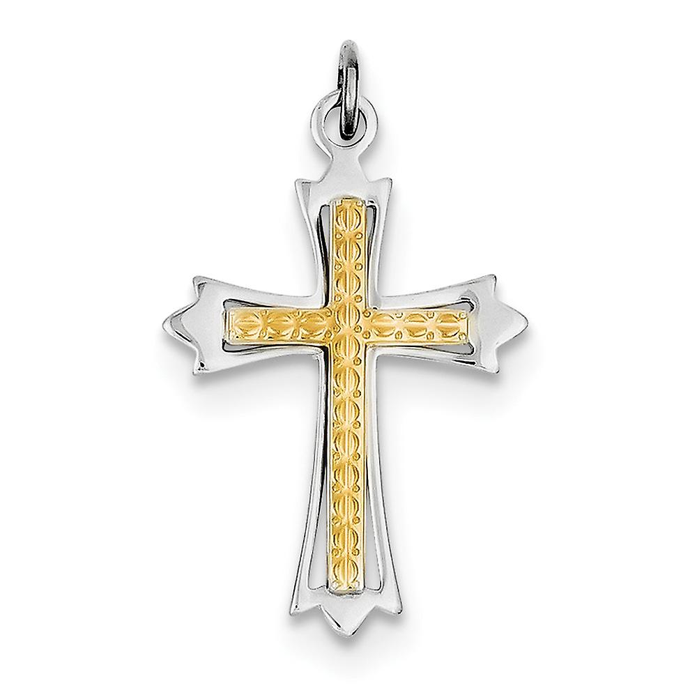 925 Sterling Silver Solid Textured Polished and 18k Gold Plated Religious Faith Cross Pendant Necklace 27x18mm Wide-Pend