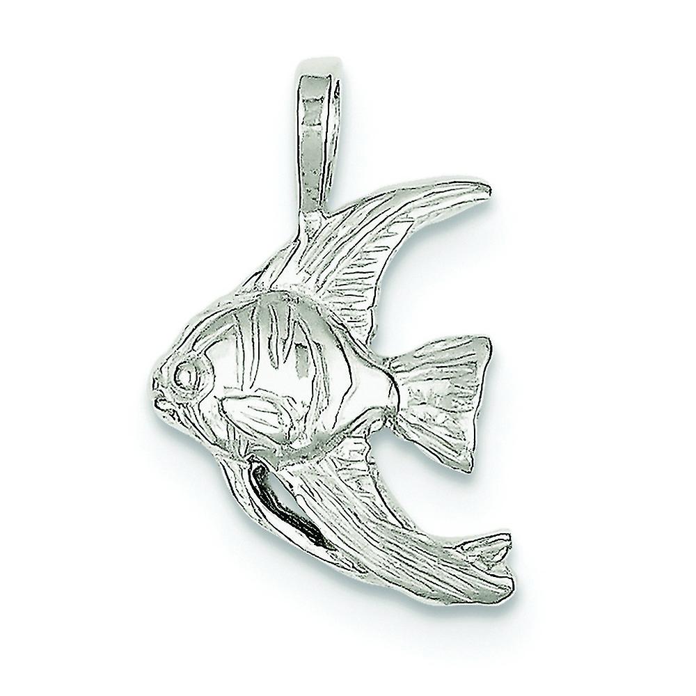 925 Sterling Silver Solid Textured Polished Animal Sealife Fish Charm 24x16mm Wide Pendant Necklace for Women
