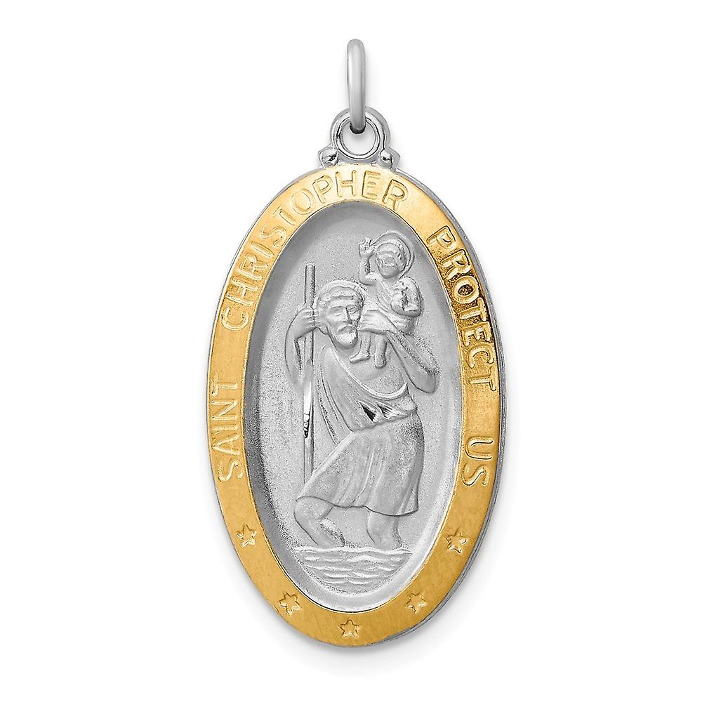 925 Sterling Silver Solid Polished and satin Engravable (back only) St. Christopher Medal Charm 30x15mm Wide Pendant Nec