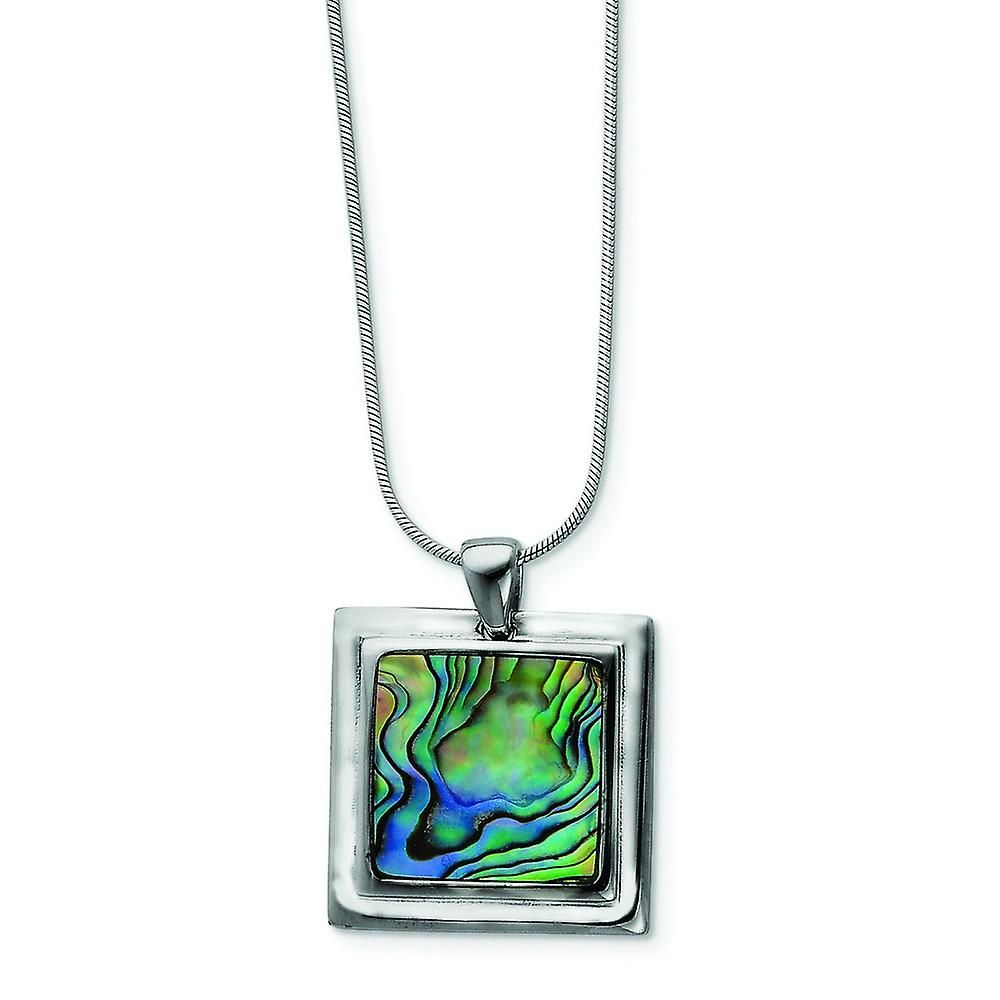 925 Sterling Silver Solid Polished Abalone Pendant With Chain 18 Inch Lobster Claw Chain Necklace for Women and Men