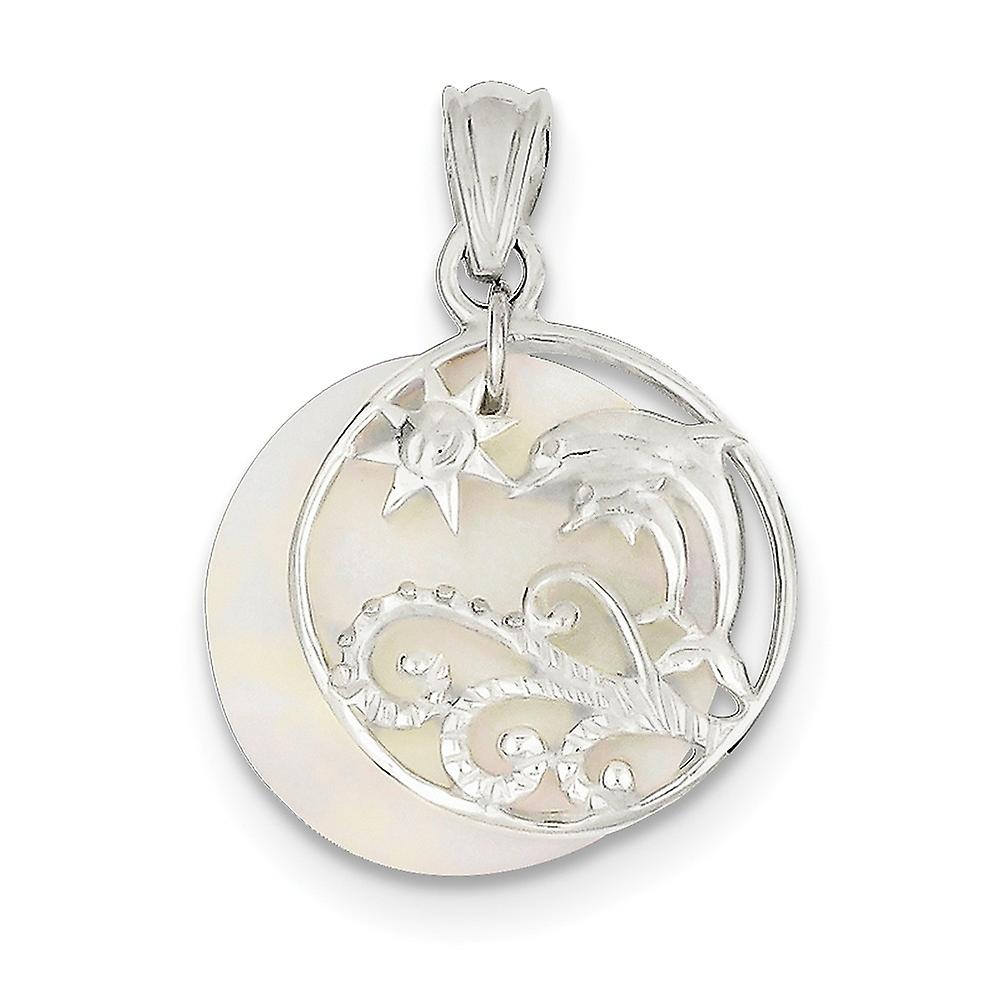 925 Sterling Silver Solid Polished Dolphin and Waves Simulated Mother of Pearl Pendant Necklace 30x20mm Wide-Pendant for