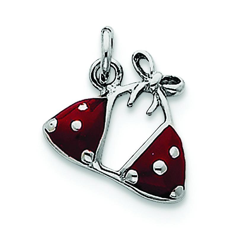 925 Sterling Silver Solid Polished Enameled Red Bikini Top Charm 15x12mm Wide Pendant Necklace for Women