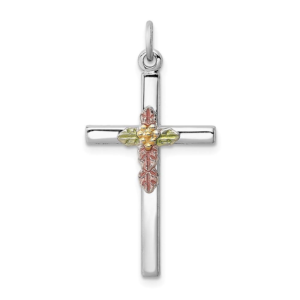 925 Sterling Silver Solid Polished Epoxy and Gold Plated Religious Faith Cross Pendant Necklace 29x17mm Wide-Pendant for