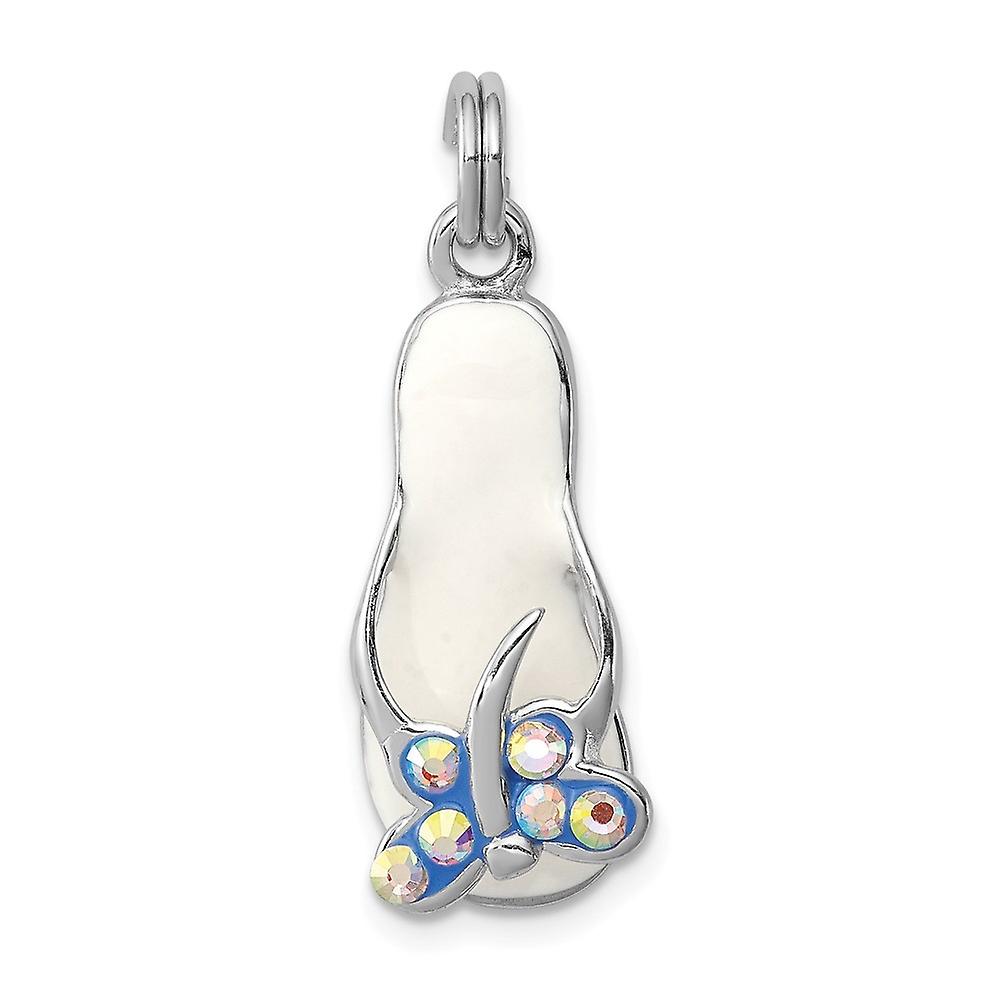 925 Sterling Silver Solid Polished Cubic Zirconia Butterfly Angel Wings Enamel Sandal Charm 24x10mm Wide Pendant Necklac