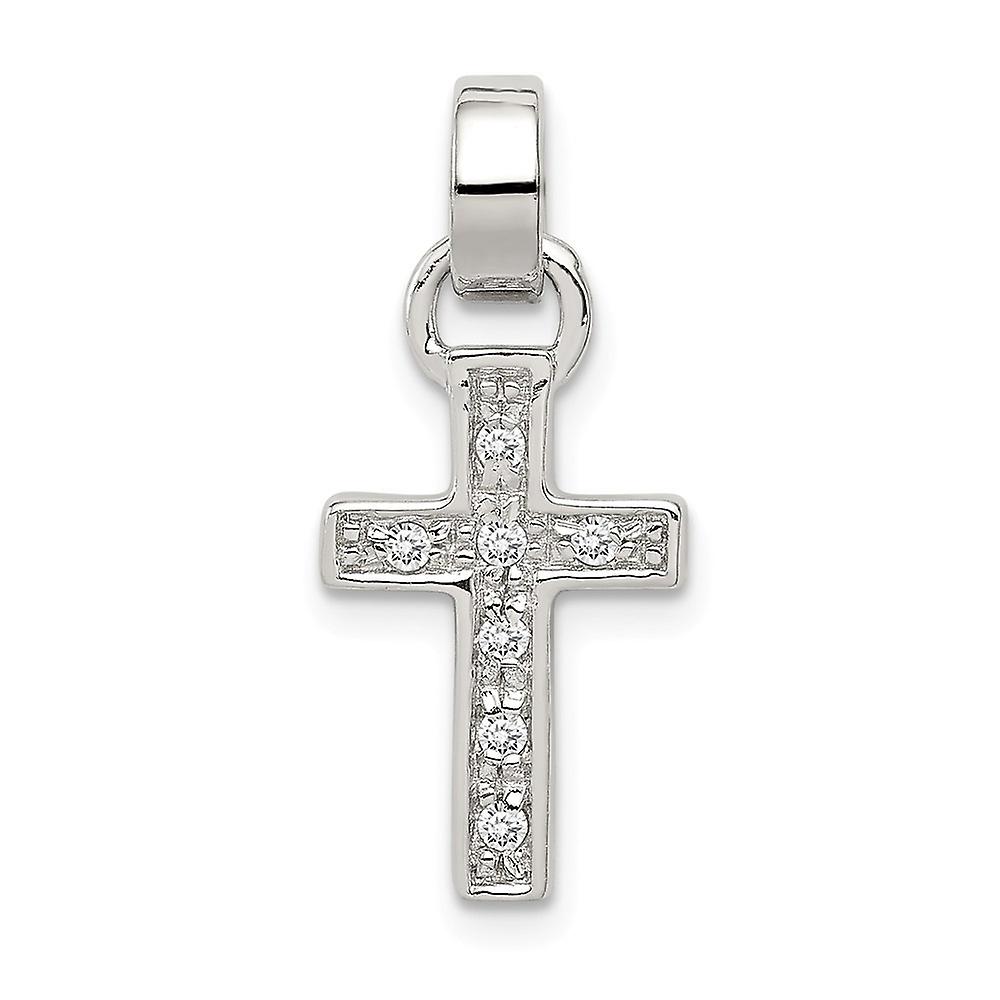 Sterling Silver Cubic Zirconia Latin Cross Pendant - Measures 23x10mm Wide - in Sterling Silver - - Product Attributes: - Polished - Solid - - Charm/Element Width: 10.5 mm - Width of Item: 10 mm - Charm/Element Length: 16.14 mm - Length of Item: 23 mm - Finish: Polished - - This Item Does Not Ship With a Chain - [ Potential Enhancement Methods: cubic zirconia ] - Synthetic. Some are covered with a product that makes the stone more durable. - [ Care and Handling: cubic zirconia ] - Clean with warm soapy water and a soft cloth. -