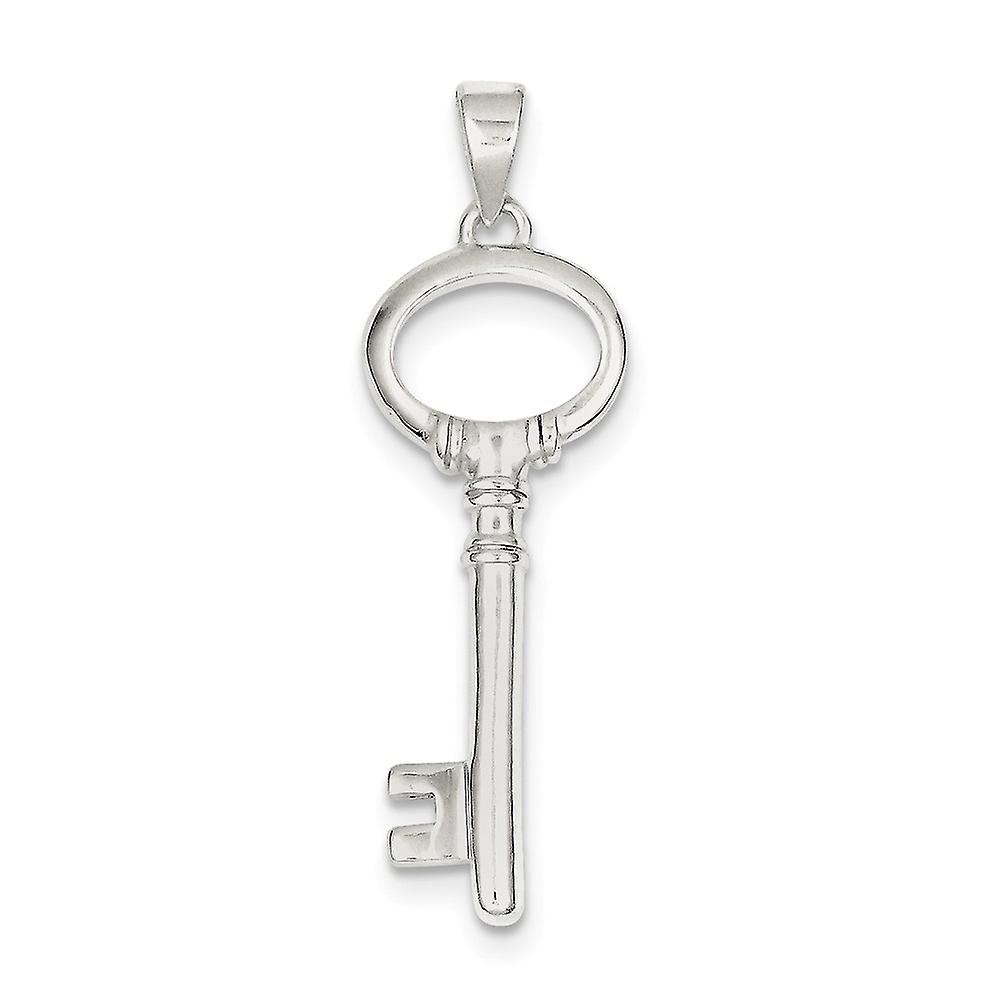 925 Sterling Silver Solid Polished Key Pendant Necklace 49x15mm Wide-Pendant for Women - 4.9 Grams