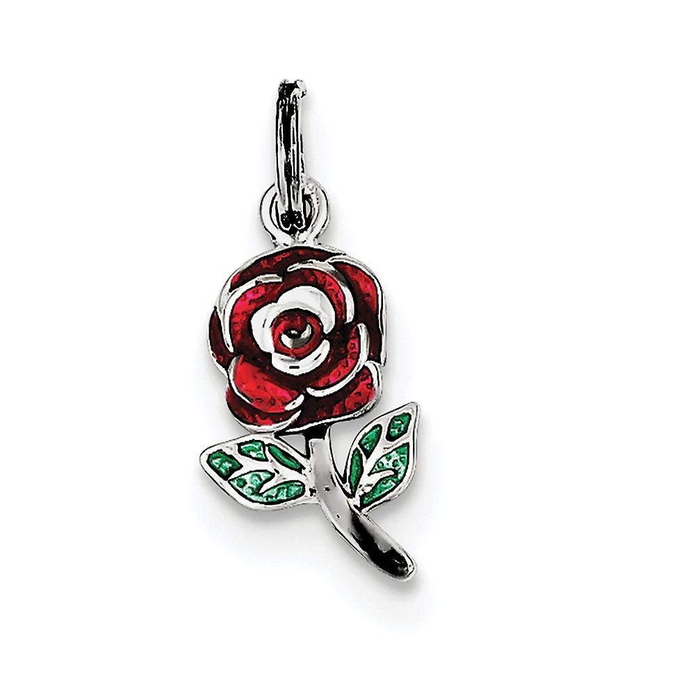 925 Sterling Silver Solid Polished Green and Red Enamel Rose Charm 17x10mm Wide Pendant Necklace for Women
