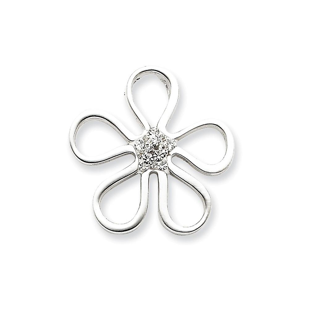 925 Sterling Silver Solid Polished Crystal Flower Pendant Necklace 25x25mm Wide-Pendant for Women
