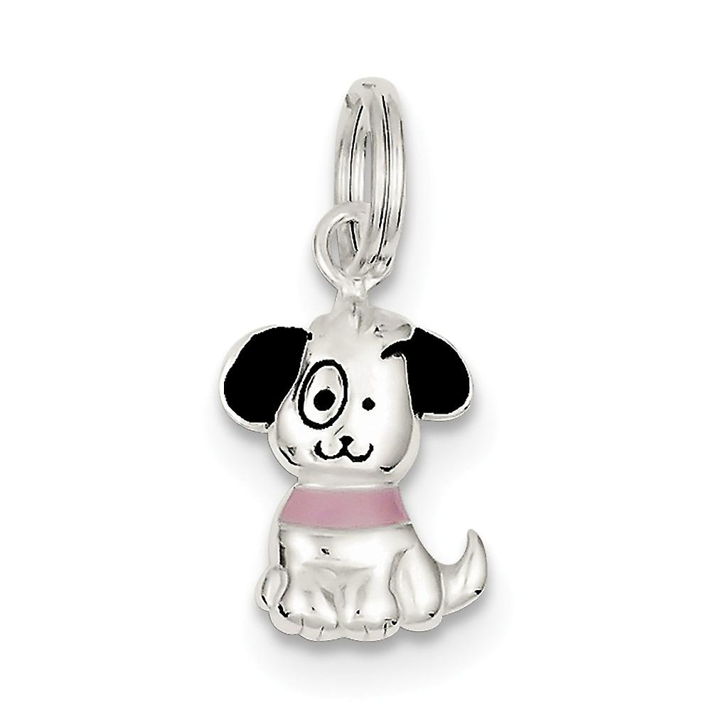 925 Sterling Silver Solid Polished Split Ring Enameled Puppy Charm 22x10mm Wide Pendant Necklace for Women