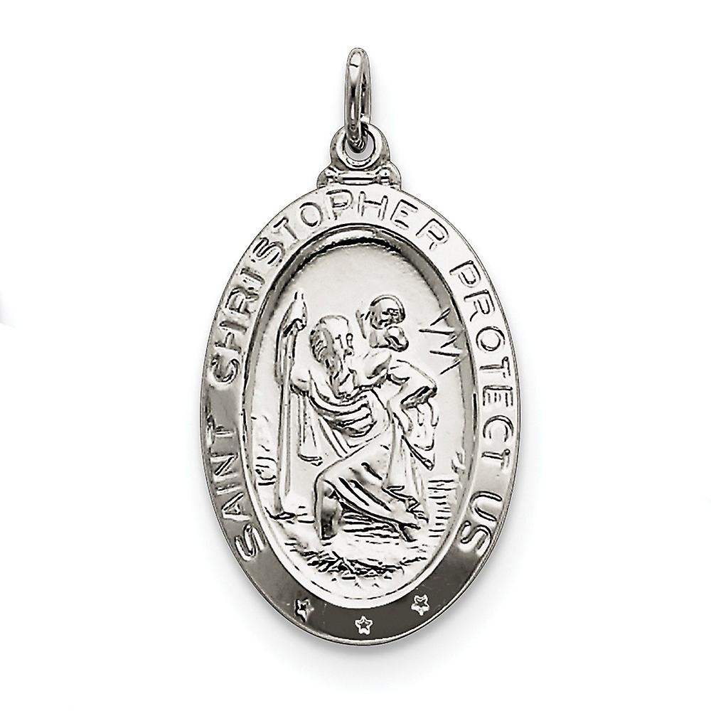 925 Sterling Silver Solid Polished Saint Christopher Medal Pendant Necklace 30x18mm Wide-Pendant for Women