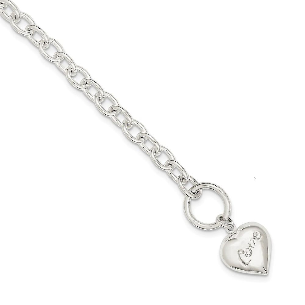 925 Sterling Silver Solid Polished Puffed Love Heart Charm Bracelet 7.5 Inch Toggle 15mm Wide-Charm-Bracelet for Women