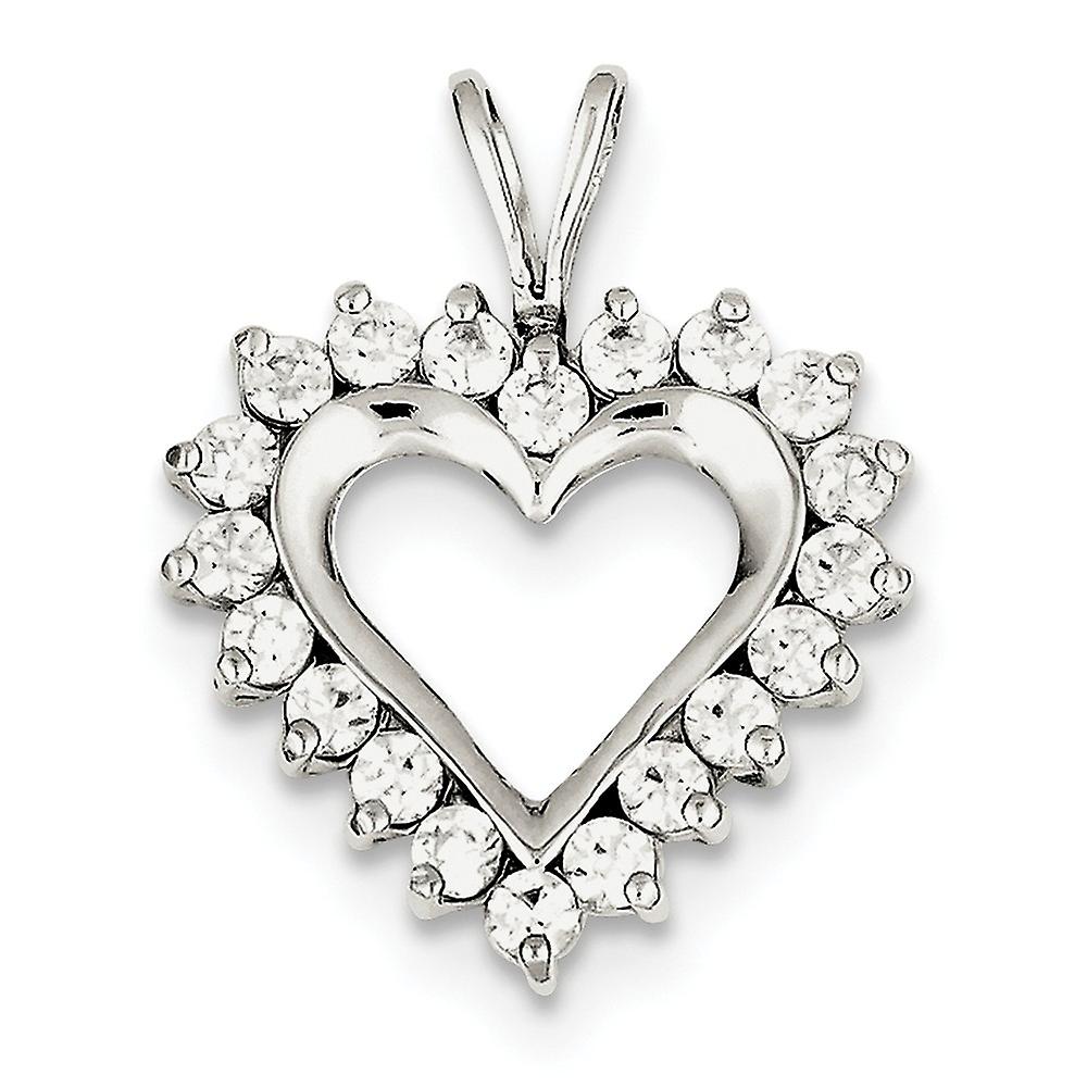 925 Sterling Silver Solid Polished Prong set Cubic Zirconia Love Heart Pendant Necklace 27x21mm Wide-Pendant for Women