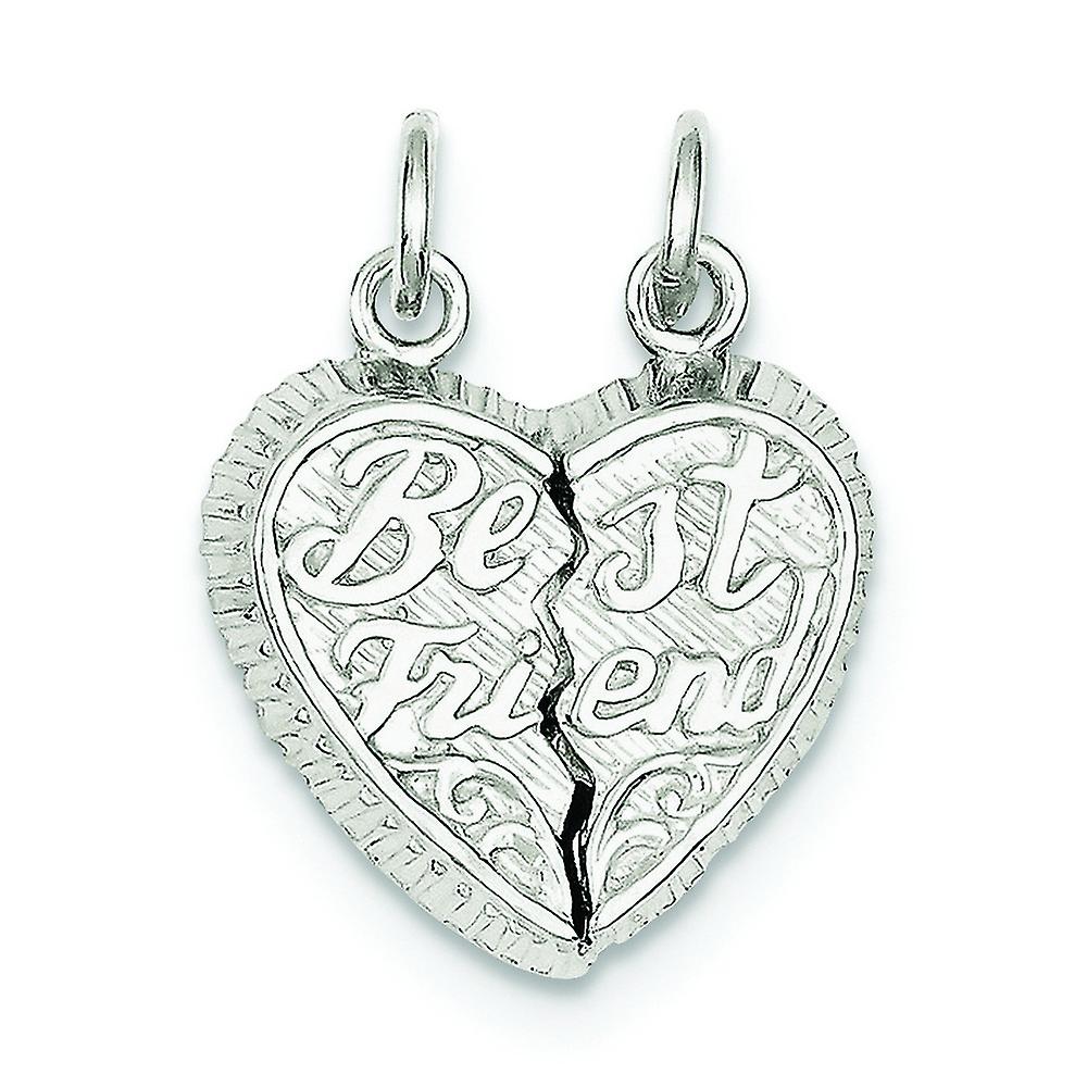 925 Sterling Silver Solid Polished Best Friend 2 Piece Break Apart Love Heart Charm 20x9mm Wide Pendant Necklace for Wom
