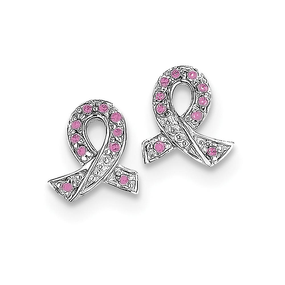 925 Sterling Silver Solid Polished Post Pink Cubic Zirconia Ribbon Earrings 10x10mm Wide Stud Earring for Women