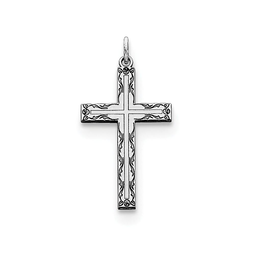 925 Sterling Silver Solid Polished Laser Etched-Laser Designed Religious Faith Cross Pendant Necklace 24x13mm Wide-Penda